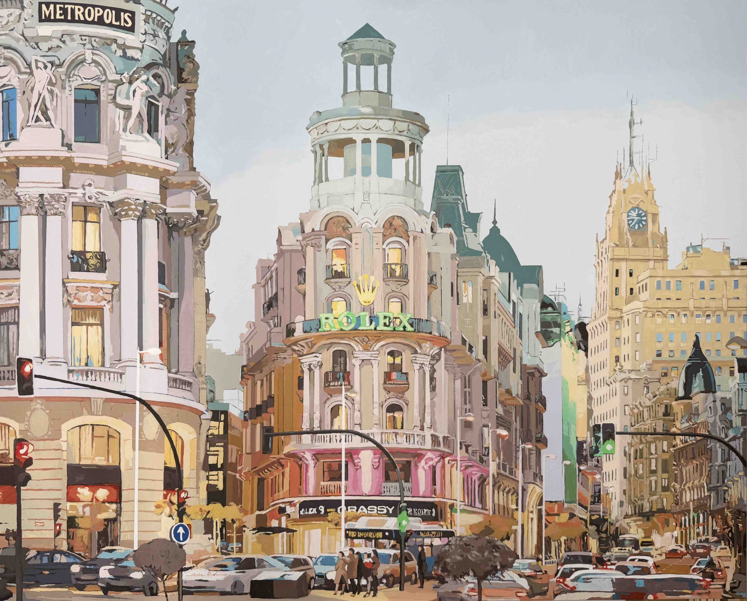 1. MADRID GRASSY GRAN VÍA, 2026, acrílico/lienzo, 130×162 cm.
