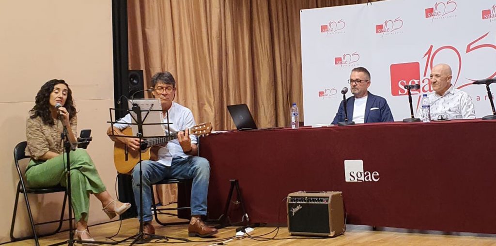 The book presentation was enlivened by the good music of the duo Julieta (voice) and Eduardo (guitar), and was presented by the writer Mª Carmen Fabre Gonsález. At the end of the event, there was a signing ceremony and a small meal in the courtyard of the Longoria Palace, headquarters of the S.G.A.E. in Madrid.